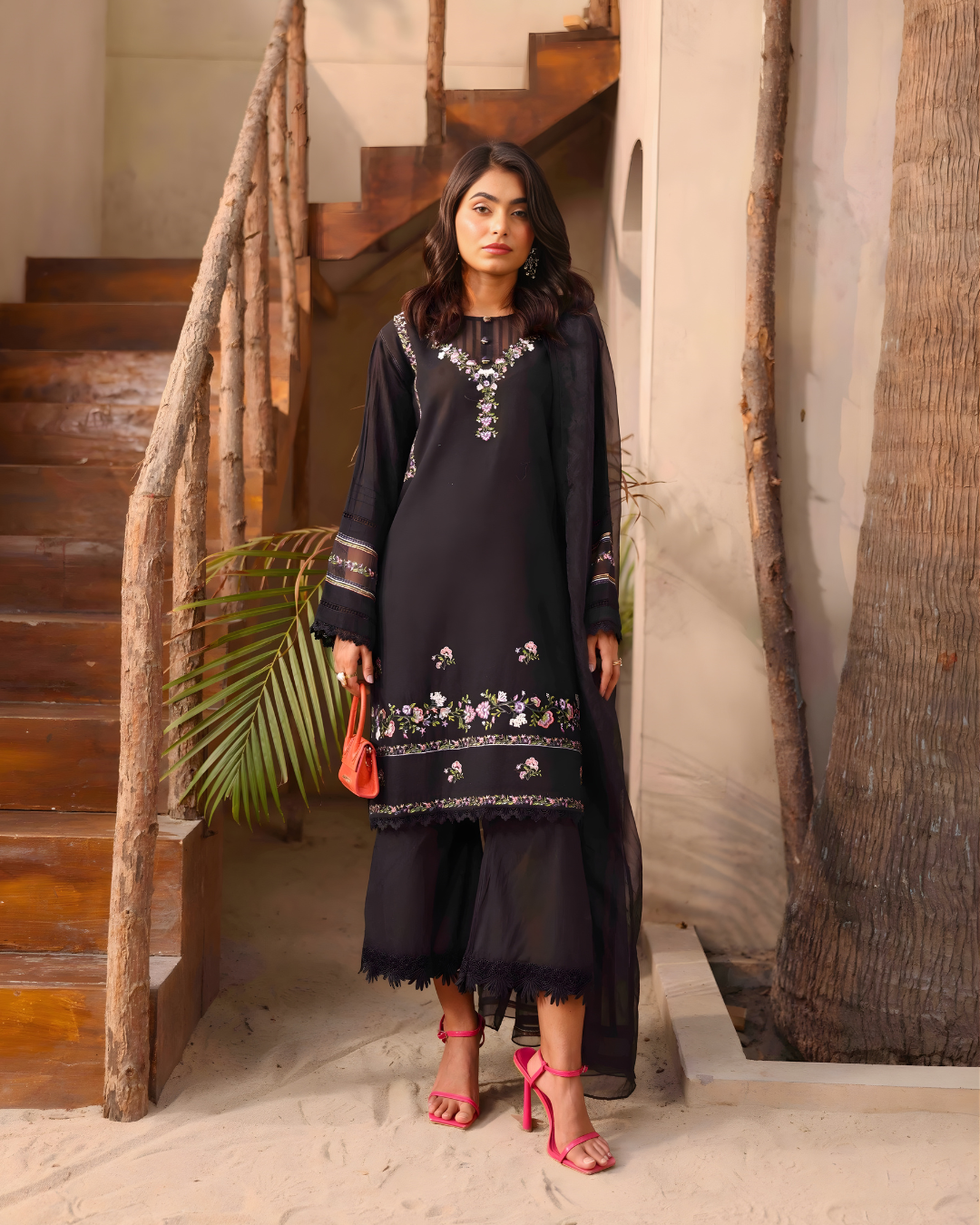 - Paired with matching trousers and a sheer organza dupatta, this design reflects effortless luxury Pret styling for Ramadan, festive gatherings, and understated wedding season wear.